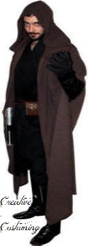 tie into place: Chest piece, leggings, boot tops, mask w/attached cowl, gloves/gauntlets, belt,